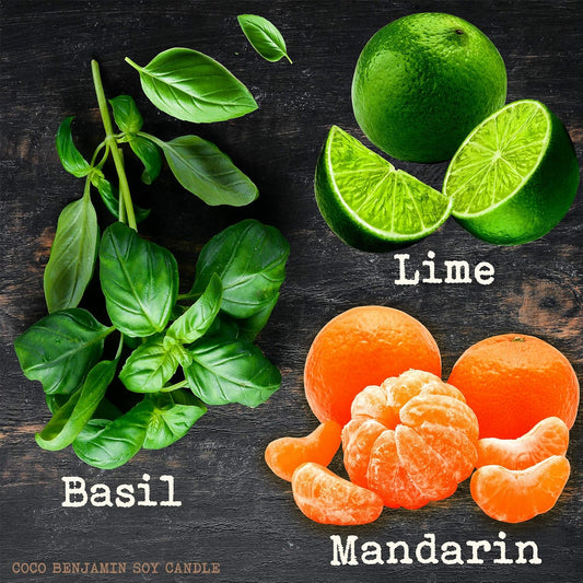 (Basil, Lime & Mandarin) 8.1 Oz, 100% Soy, Hand Poured Soy Candle, Highly Scented